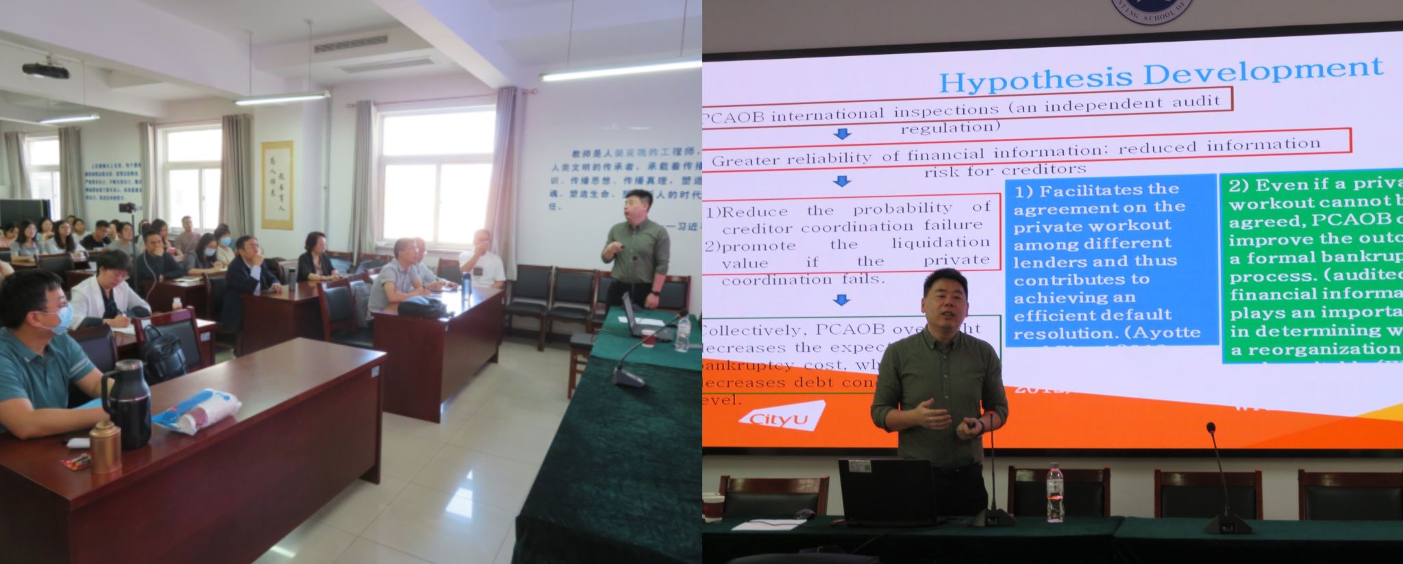 与智能管理会计研究院联合举行学术名家论坛,特邀香港城市大学教授余扬新做学术报告《PCAOB International Inspections and Debt Concentration》,学院科研骨干及博硕士生积极参与。