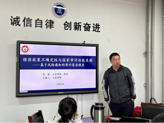 与智能管理会计研究院联合举行了第185次教师论坛。本次论坛由智能管理会计研究院副院长李颖教授主持,主要研讨了上官泽明副教授的工作论文《经济政策不确定性与国家审计功能发挥——基于风险感知的审计需求视角》。
