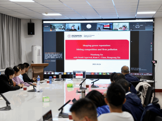 中国人民大学许年行教授进行《Shaping green reputation: Sibling competition and firm pollution》主题演讲。在当今社会,污染给数十亿人带来了巨大的健康和经济负担,同时还阻碍了经济和社会的发展,并且在实施解决环境问题的措施时,政府往往效率低下,另外,有关学者发现产品市场竞争对企业在清洁方向的创新的概率有着显著的正向影响。许教授对于为什么要关注家族企业董事长的兄弟姐妹给出一下四个原因:首先,在中国有独生子女政策可以用来检验由于兄弟姐妹而导致的家族企业竞争能够减少对企业污染的影响;其次,对于父母和儿女来说,他们之间的关系可能是和谐的,但是对于兄弟姐妹来说,他们可能是彼此的竞争对手;再次,心理学和社会学相关文献表明,兄弟姐妹有助于个体的竞争精神;最后,拥有兄弟姐妹并不是企业高管的自我选择行为。在结尾处许教授表示绿色金融与供应链发展是一个有意义、有价值的话题,值得大家持续深入研究。