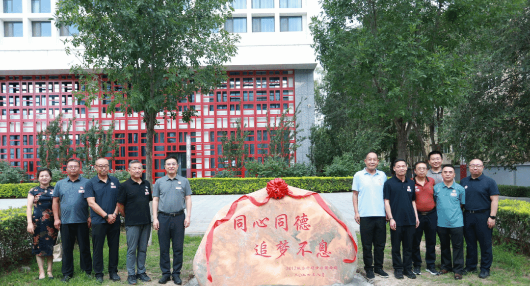 在场校友代表2012级会计硕士集体向学校捐赠了纪念景观石,景观石长2.4米、高1.4米、厚51厘米的尺寸数据均有象征的年份寓意,表达了校友们别致的心意。“同心同德 追梦不息”的刻文出自校歌歌词,代表着校友们不曾忘记的求学初心,更散发着校友们那蓬勃的朝气和向上的精神。